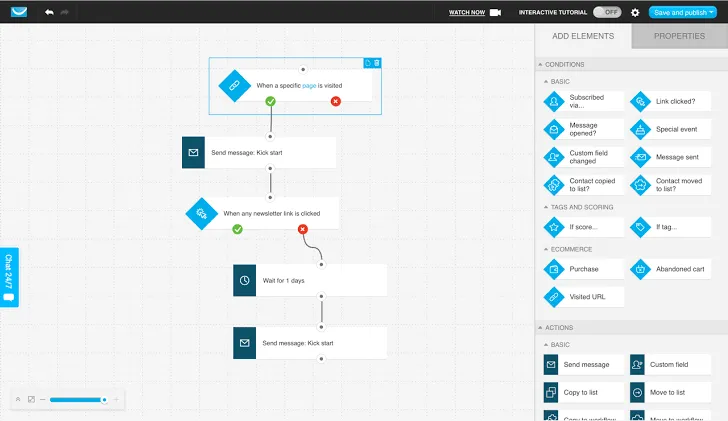 Platforma służy głównie do e-mail marketingu, ale posiada też funkcje marketing automation, tworzenia landing pages, webinarów oraz lejków sprzedażowych.